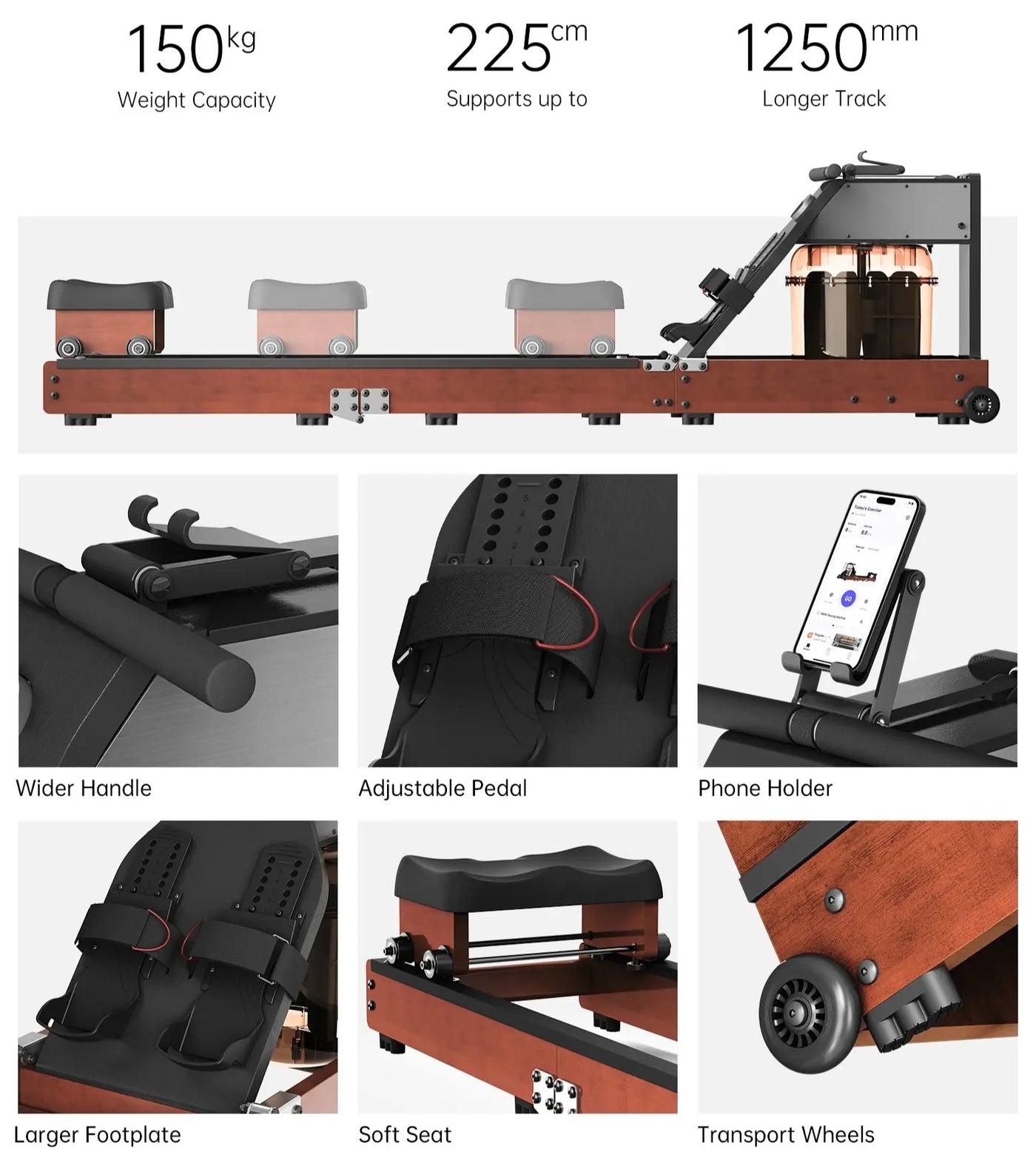Embrace a joyful rowing experience with soothing water sounds that bring a touch of nature into your home. Enjoy a return to simplicity and authenticity, free from mechanical noise, making your family workouts more natural and enjoyable!