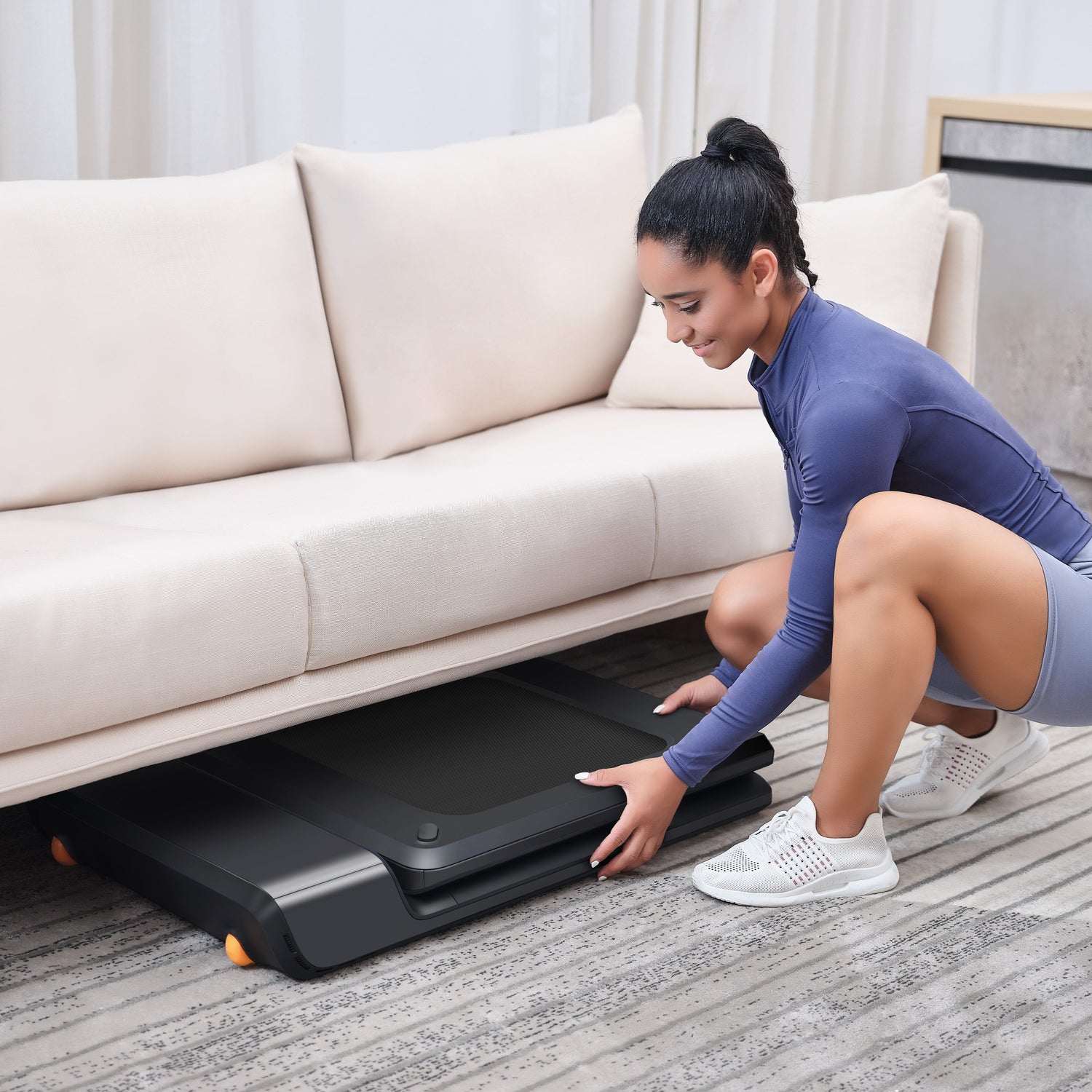 No more excuses for not having time or space to do sports. WalkingPad A1 Pro under desk treadmill provides you with a great way to increase activity and avoid pain from sitting while you work. Taking up little storage space (Less than 0.5 sq.m.), this under desk treadmill can be easily set up in the office and folded under the desks. Relaxing by walking while doing some simple tasks on hand can increase your productivity and efficiency and save you from unhealthy sedentary work.
