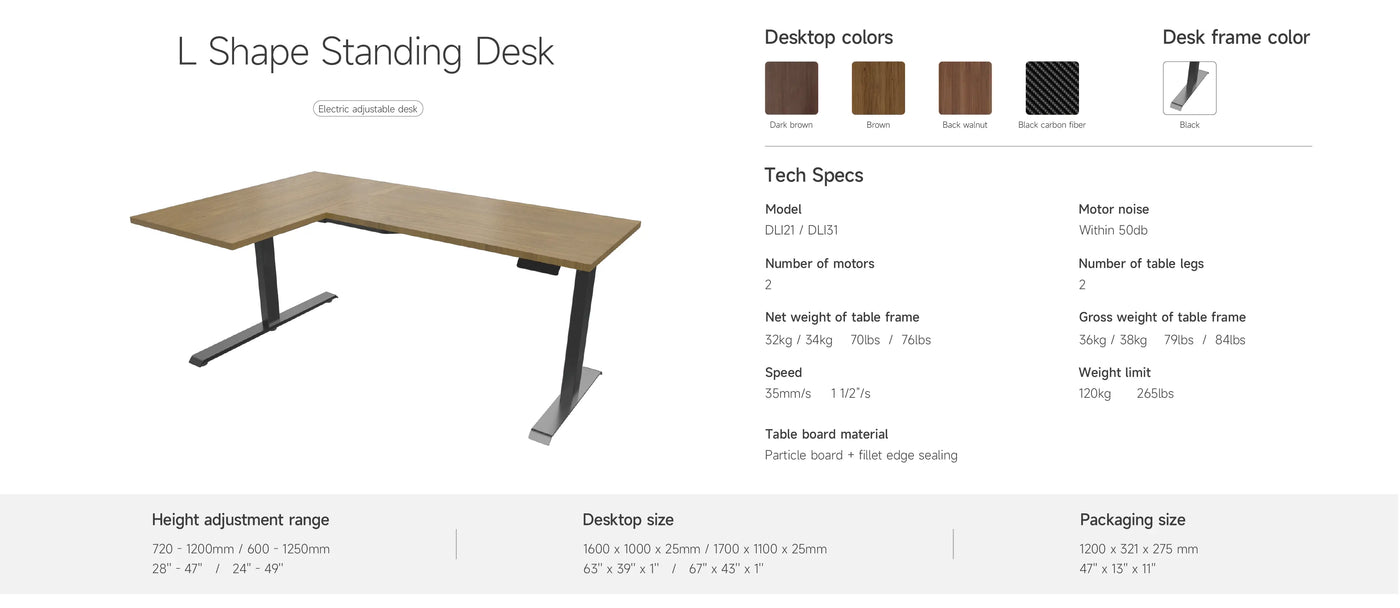 WalkingPad L Shaped Standing Desk - Black / 63*39in / Left Side--2-Section Legs is backordered and will ship as soon as it is back in stock.